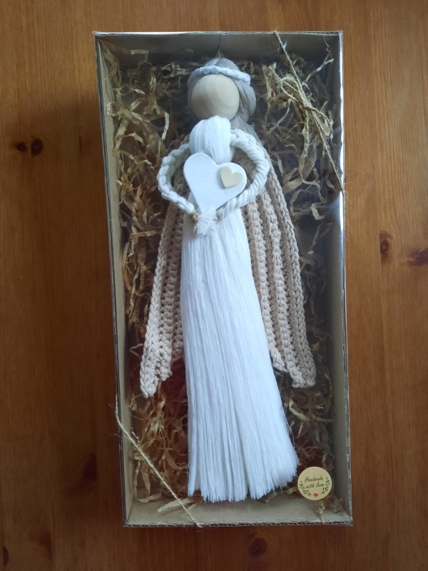 Andílek o velikosti 30cm v různých odstínech a provedení. Pěkná dekorace nejen na Vánoce. Oko na pověšení je dost dlouhé a případně ho můžete zmenšit. Odesíláme v dárkové krabičce. celý popis