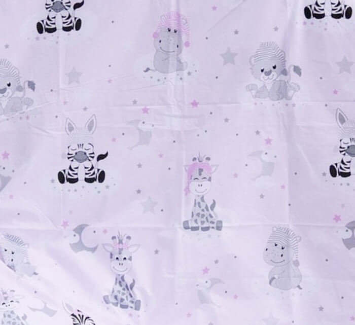 Bavlněná dětská látka světle růžová zebra s kamarády, z této krásné a levné dětské bavlněné látky lze ušít jakýkoliv výrobek např. dětský polštářek, dětské povlečení, deku, rychlozavinovačku, mantinel, kapsář na postýlku, hnízdečko pro miminko, dětskou zástěrku, vložku do kočárku popřípadě prostěradlo do kočárku a mnoho dalšího…