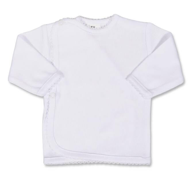 Bílá kojenecká košilka pro miminko je vyrobena ze speciální, 100%, velmi jemná a příjemná dětské bavlny.