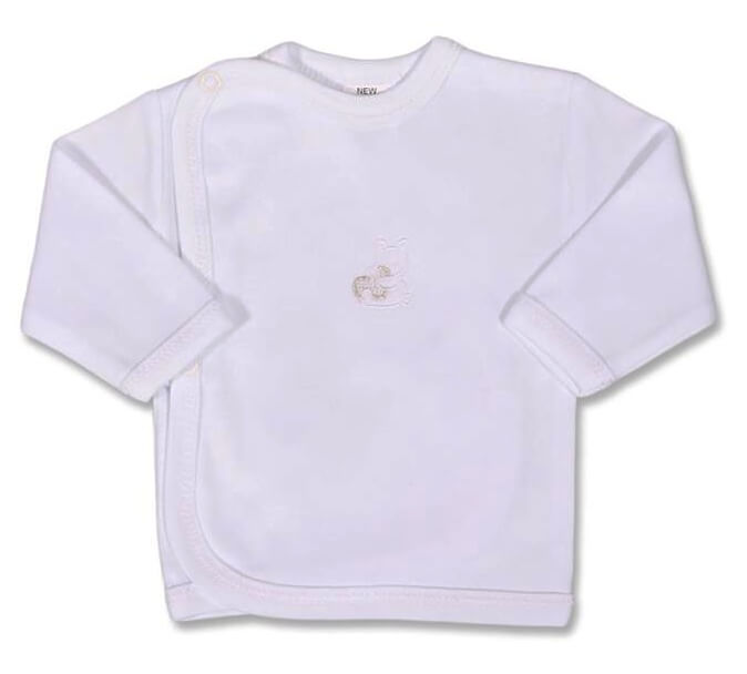 Kojenecká košilka má boční zapínání.