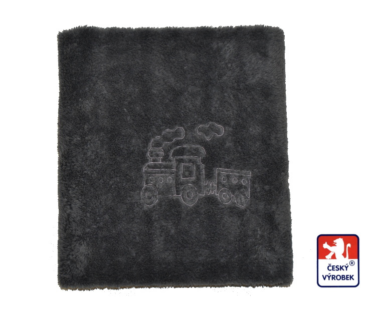 - Deka do kočárku Dětský svět Lama tmavě šedá s výšivkou vláčku