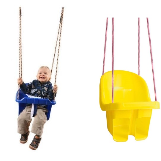 Dětská barevná houpačka klasického, bezpečného, sedačkového stylu, je vyrobená z velmi kvalitního plastového materiálu. Dětská houpačka má tvar, který je přizpůsoben dítěti a pevná lana (velmi podobná lanům horolezeckýcm) zaručují odolnost a výdrž.