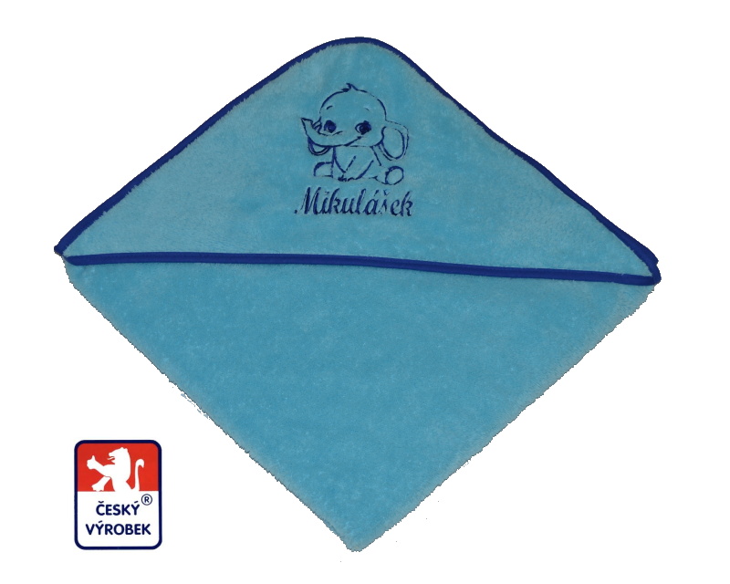Dětská usuška s kapucí má již v ceně: výšivku obrázku a výšivku jména dítěte.