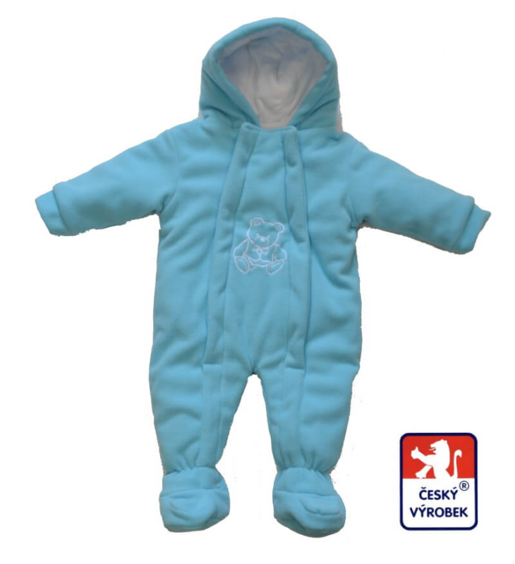 Zimní kojenecká kombinéza pro miminko Dětský svět tyrkysová s Medvídkem, je vyrobena z vysoce kvalitního, atestovaného, mikrothermofleece s nežmolkovací úpravou.