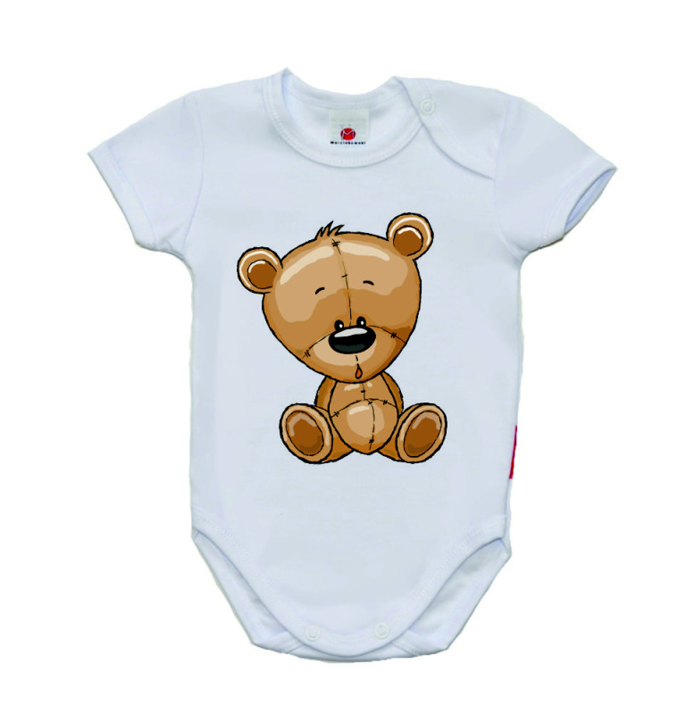 Dětské bílé body Gama s krátkým rukávem a potiskem roztomilého hnědého medvídka velikost 62Skladem v e-shopu208 Kč/ ks172 Kč bez DPH