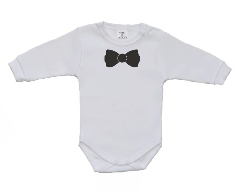 Kojenecké/dětské body s velkým obrázkem fešáckého motýlku, je nádherné bavlněné kojenecké body s dlouhým rukávem, v bílé barvě s dlouhým rukávem, jak na domácí tak i slavnostní využití.