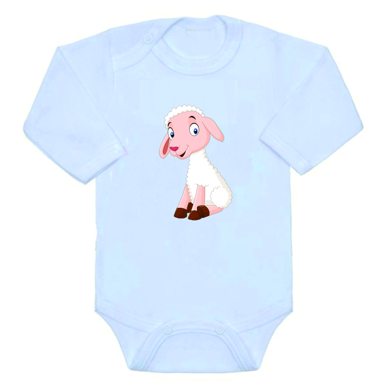 Kojenecké/dětské body s velkým roztomilým obrázkem, sedící ovečka, je bavlněné kojenecké/dětské body s dlouhým rukávem, v bílé barvě s potiskem obrázku ve velkém provedení.
