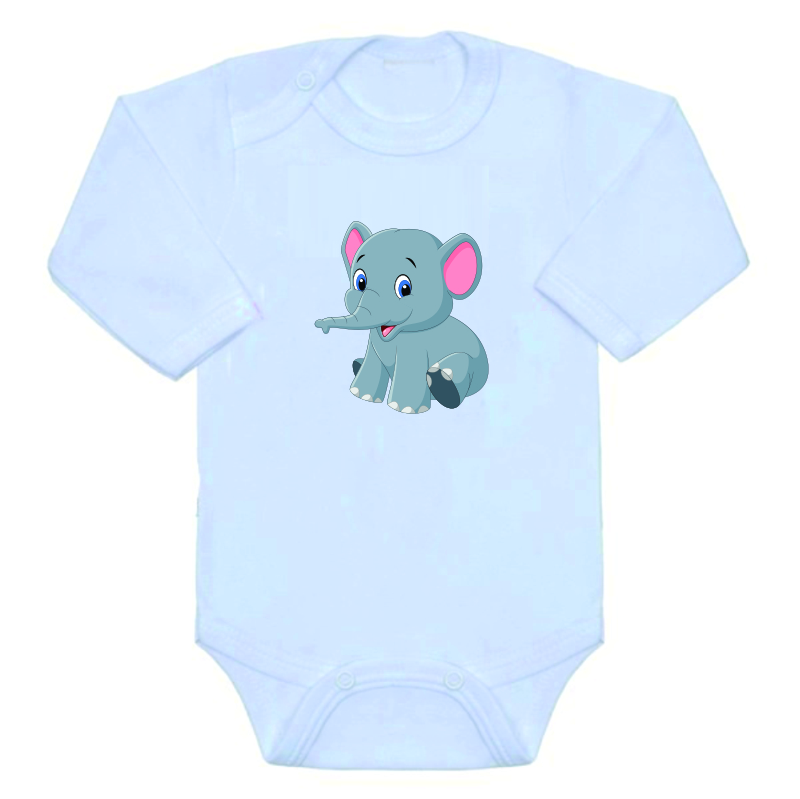 Kojenecké/dětské body s velkým roztomilým obrázkem, sedící slon, je bavlněné kojenecké/dětské body s dlouhým rukávem, v bílé barvě s potiskem obrázku ve velkém provedení.