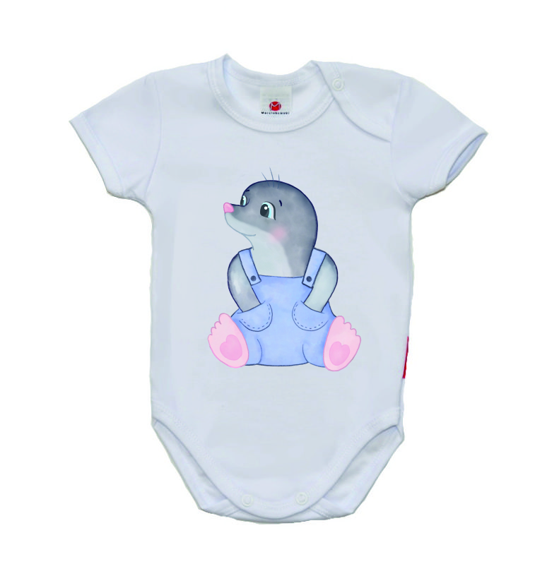 Dětské body krátký rukáv Gama, krteček obrysy vel.74Skladem v e-shopu208 Kč/ ks172 Kč bez DPH