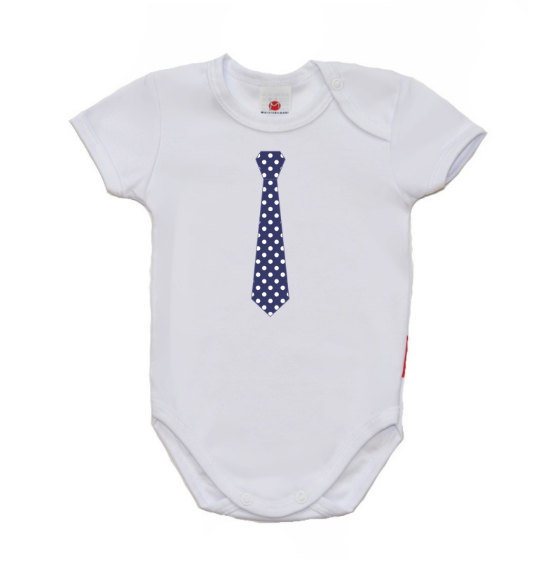 Kojenecké/dětské bílé body s krátkým rukávem a velmi elegantní kravatou, je nádherné bavlněné, velmi příjemné dětské body s potiskem obrázku kravaty ve velkém provedení.