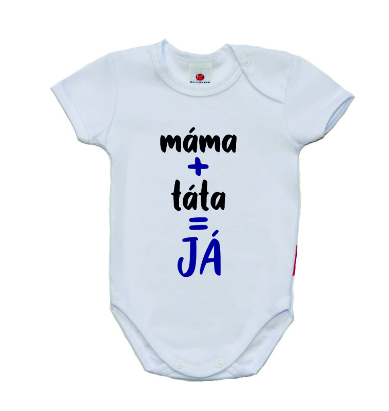 Dětské body s vtipným českým potiskem, Gama, krátký rukáv, máma+táta=JÁ, chlapecké velikost 50