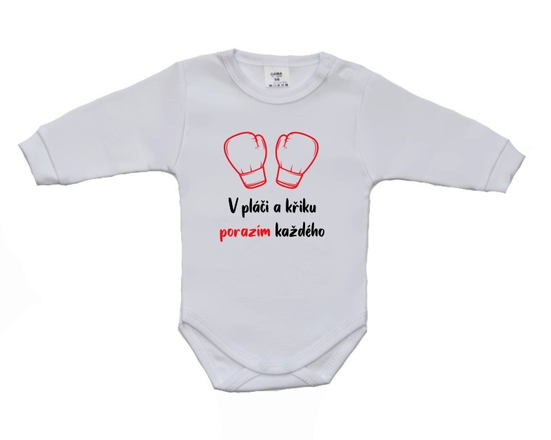 Dětské body s vtipným potiskem Gama V pláči a křiku porazím každého velikost 80Skladem v e-shopu230 Kč/ ks190 Kč bez DPH