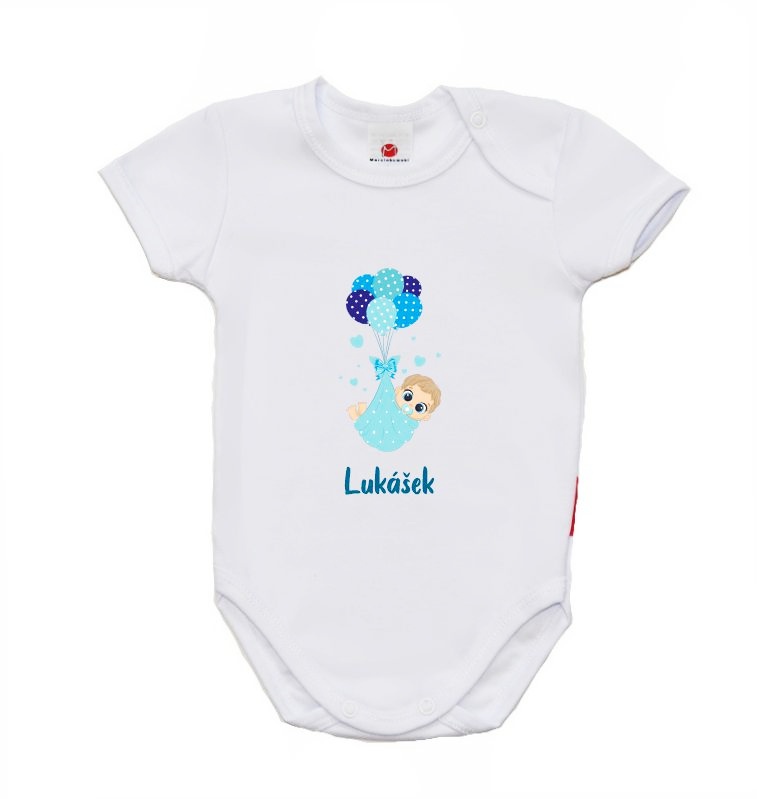 Dětské body se jménem, Gama, krátký rukáv miminko chlapeček s balónky velikost 56Vyrobíme na základě objednávky 2-7 pracovních dnů314 Kč/ ks260 Kč bez DPH