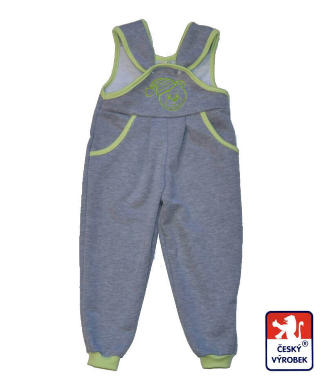 Dětské tepláčky s laclem šedé s medvídkem jsou výrobek z našich dílen Dětský svět Fulnek