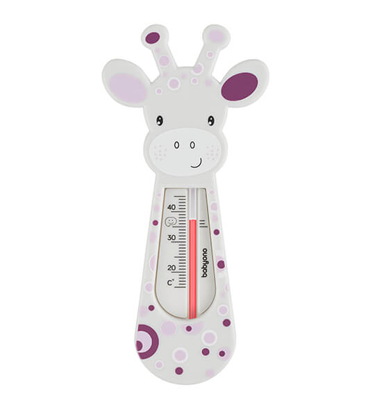 Dětský teploměr do vody/vaničky, Baby Ono, šedá žirafa New s růžovými fleky, slouží ke kontrole teploty vody připravované koupací lázně malého dítěte. Dětský teploměr do vody/vaničky, Baby Ono, je přesný, spolehlivý s dobře čitelnou stupnicí. Dětský teploměr do vody k měření teploty používá obarvený alkohol. Trubička dětského teploměru do vody je bezpečně zapuštěna v těle teploměru tak, aby se k ní dítě nedostalo.