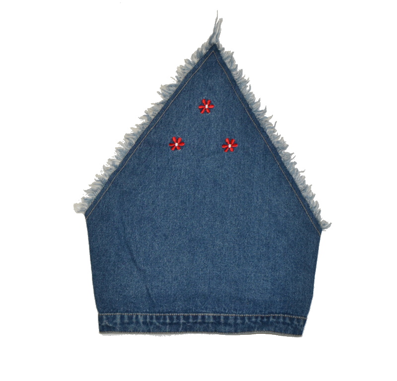 Dívčí letní šátek riflový s kytičkou se zapínáním na suchý zip