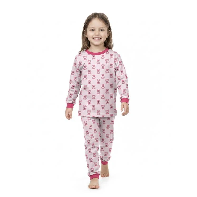 Holčičí pyžamo české výroby, Dětský svět, růžový medvídek na smetanovém podkladě je krásné bavlněné dětské pyžamo, které je vyrobeno z velmi příjemného atestovaného maka (jersey). Kabátek pyžama má manžety u krku i na rukávech. Na kalhotách jsou manžety na nohavicích. Kalhoty pyžama jsou v pase do měnitelné a nastavitelné gumky.