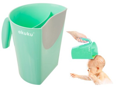 Dětský hrníček na umývání hlavičky, Akuku, je velmi pohodlný hrníček/kyblíček ke koupání, který usnaďnuje splachování těla a vlasů dítěte. Hrníček na umývání hlavičky, je speciálně projektován pro potřeby dítětě a má elastickou manžetu, která se přiloží k hlavičce či tělu dítěte a náklonem kyblíku dojde k vytékání umývací lázně.