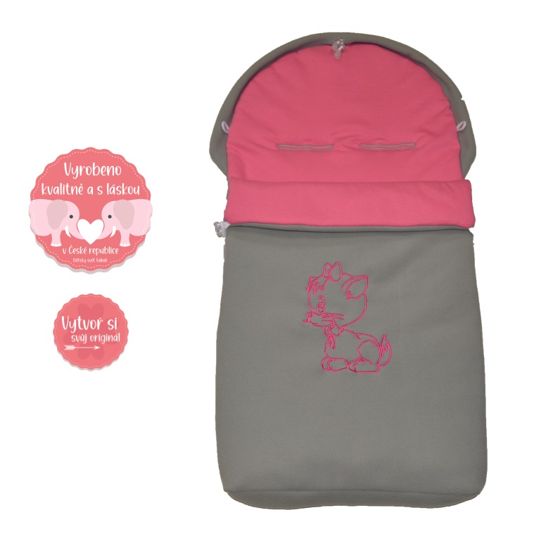 - Jarní/podzimní fusak do kočárku Dětský svět světle šedý/růžový s kočičkou