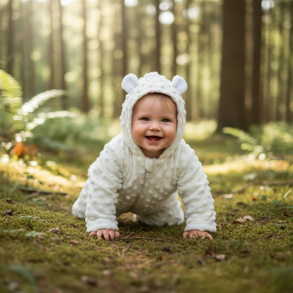 Jarní/podzimní dětský overal Minky je nádherný overálek vyroben z dětských a atestovaných materiálů v prémiové kvalitě v našich dílnách Dětský svět. Dětský overal je vyráběn ze dvou vrstev atestovaných materiálu pro miminko. Svrchní materiál je jemný microplyš s vytlačovaným vzorem puntíků (Minky) a uvnitř je po celé délce výrobku všita bavlněná Jersey podšívka. Kombinéza má rozpínání na skrytý zip, šikmo na předním díle do jedné nohavice pro pohodlné oblékání. Zip má na konci látkovou krytku, tak aby dítě u krčku nechladil. Jarní overálek má na kapuci našité medvědí ouška.