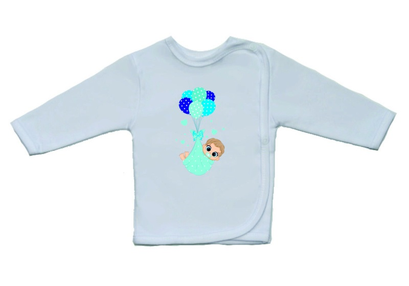 - Kojenecká košilka Gama bílá s velkým obrázkem miminko chlapeček s balónky