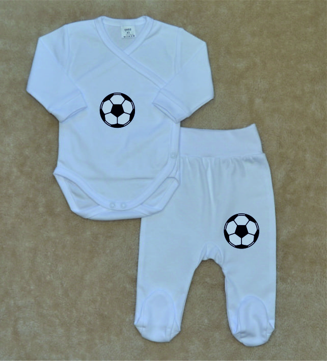 Bílá kojenecká soupravička Gama, fotbalista, zavinovací body+polodupačky, je krásná, vysoce kvalitní, svým potiskem decentní, 2-dílná bílá kojenecká soupravička pro miminko, která je vyrobená ze 100% velmi jemné, kojenecké, velmi příjemné, atestované bavlny, vhodné pro miminka.