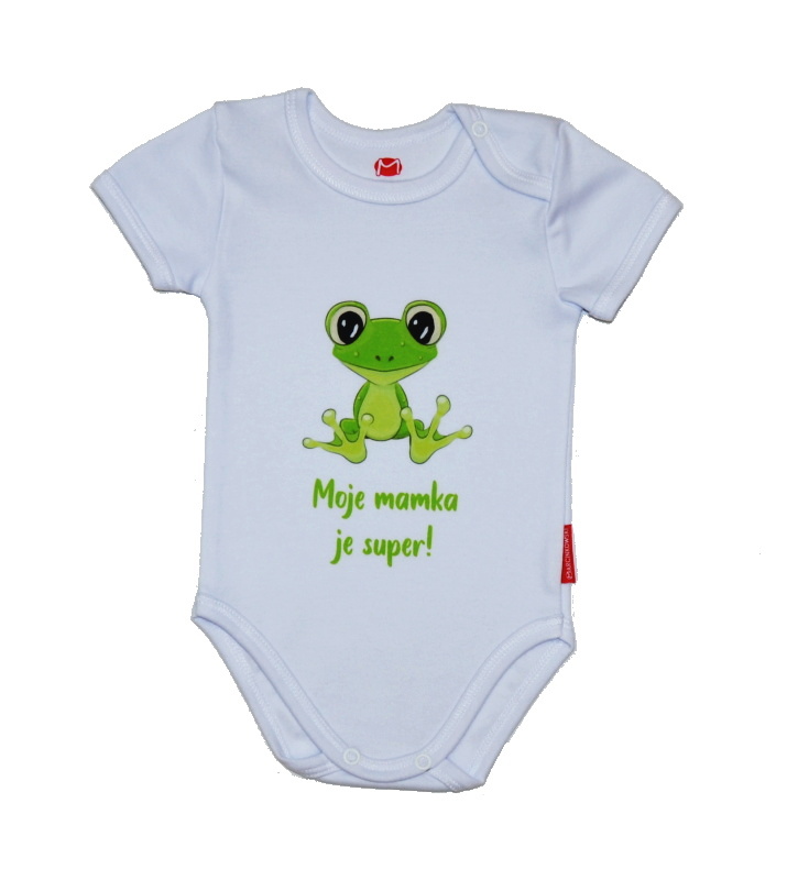 Kojenecké/dětské body s českým nápisem, Gama, Moje mamka je super! s krátkým rukávem, je nádherné, velmi kvalitní bavlněné dětské body, které je velmi příjemné na nošení s vtipným potiskem ve velkém provedení.