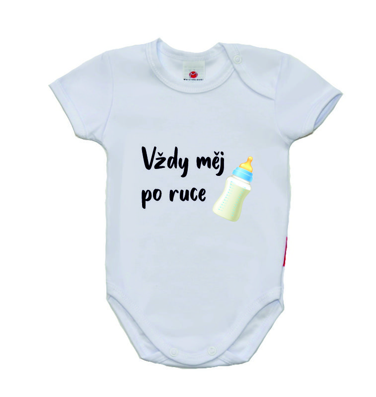 Kojenecké body s vtipným potiskem, Gama, krátký rukáv, Vždy měj po ruce mléko vel.56