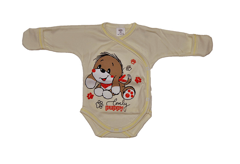 - Kojenecké celopropínací body s rukavičkami Gama, žluté s pejsek puppy, velikost 62