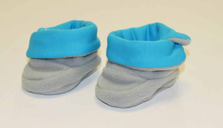 Kojenecké papučky, Dětský svět, fashion baby, šedotyrkysové vel.00, jsou vyrobeny z velmi jemného, příjemného a hřejivého materiálu fleece s nežmolkovací úpravou a komnbinací materiálu mako, který je atestovaný pro výrobu kojeneckého a dětského oblečení.