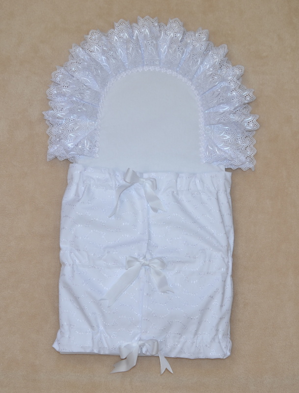 Krajková zavinovačka na křtiny, Dětský svět, obdélníková s madeirou, krajkou a kytičkou Ateca je, luxusní, krajková, vázací, zavinovačka obdelníkového tvaru, vyrobená z velmi kvalitních, atestovaných materiálů ze 100% bavlny. Zavinovačka pro miminko má stuhové vázání a je nutné do ní vložit obdélníkovou vložku. Křtící zavinovačku není nutné nikterak kůlmovat, škrobit atd, jelikož krajka je skládaně šitá a není náročná na údržbu. Zavinovačka se převážně používá pro slavnostní chvíle jako křtiny, vítání občánků.