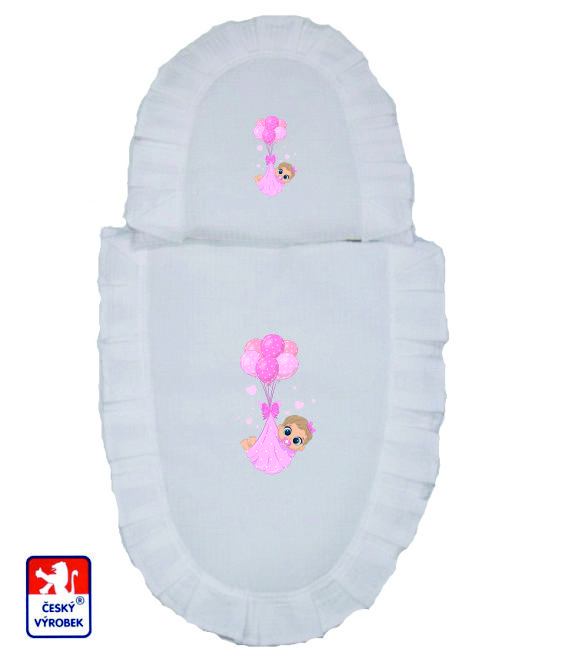 - Peřinky do dětského kočárku Dětský svět bílé s obrázkem miminka s balónky