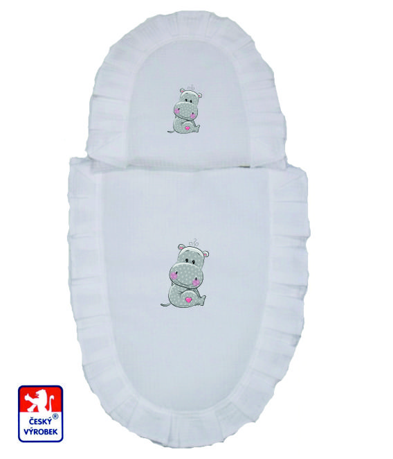 Peřinky do kočárku pro panenky Dětský svět bílé s hrošíkem