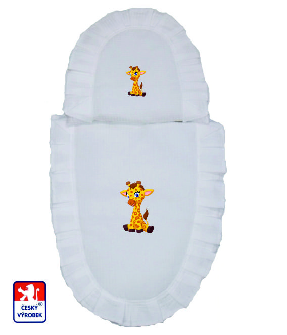 Peřinky do panenkového kočárku Dětský svět bílé s obrázkem žirafátka
