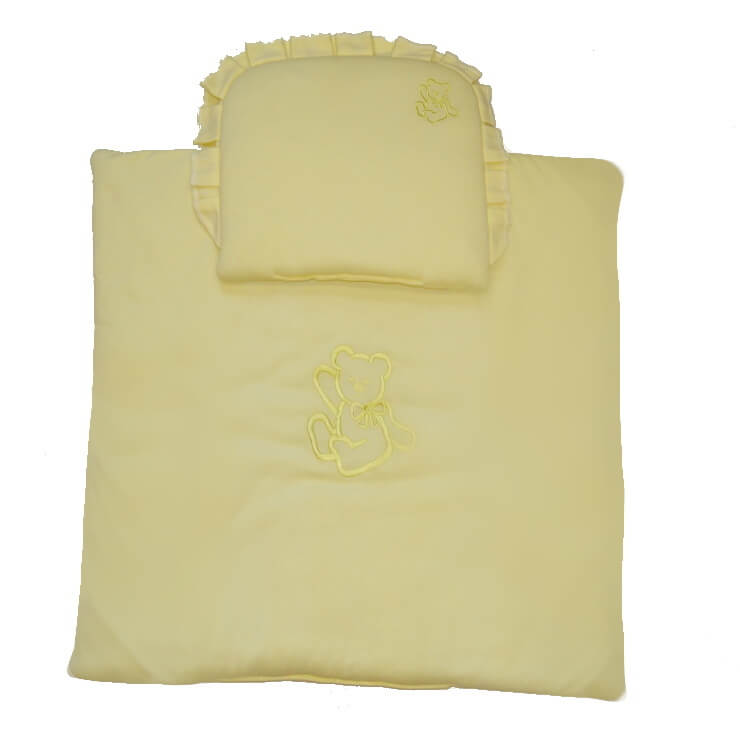 Peřinky s polštářkem do kočárku mako, žluté s mávajícím Medvídkem jsou výrobek z naší přímé výroby Dětský svět Fulnek