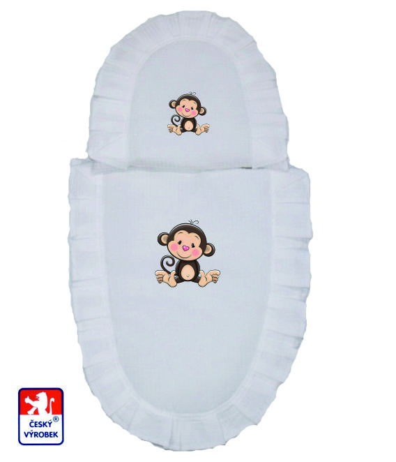 - Peřinky na panenkový kočárek, Dětský svět, bílé s opičkou