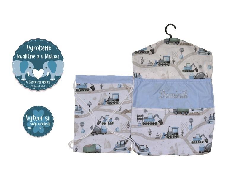 - Sada kapsáře na ramínko do školky a pytlíčku na botičky Dětský svět chlapecký s výšivkou jména