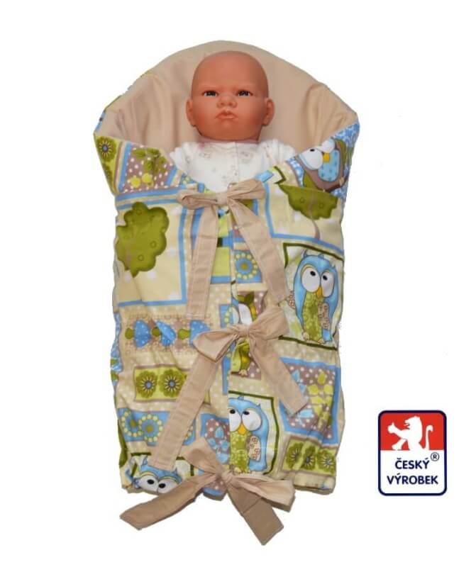 Kojenecká šněrovací zavinovačka, zelená Sova, je výrobek z našich dílen Dětský svět Fulnek