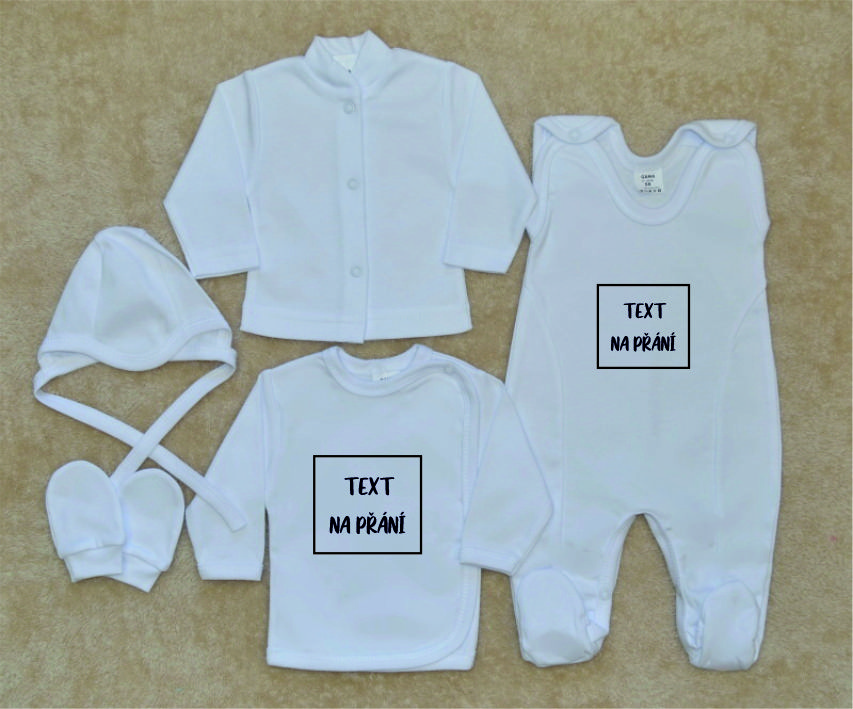 Kojenecká soupravička do porodnice se zakázkovým vlastním textem/obrázkem je dodávána ve velikosti: