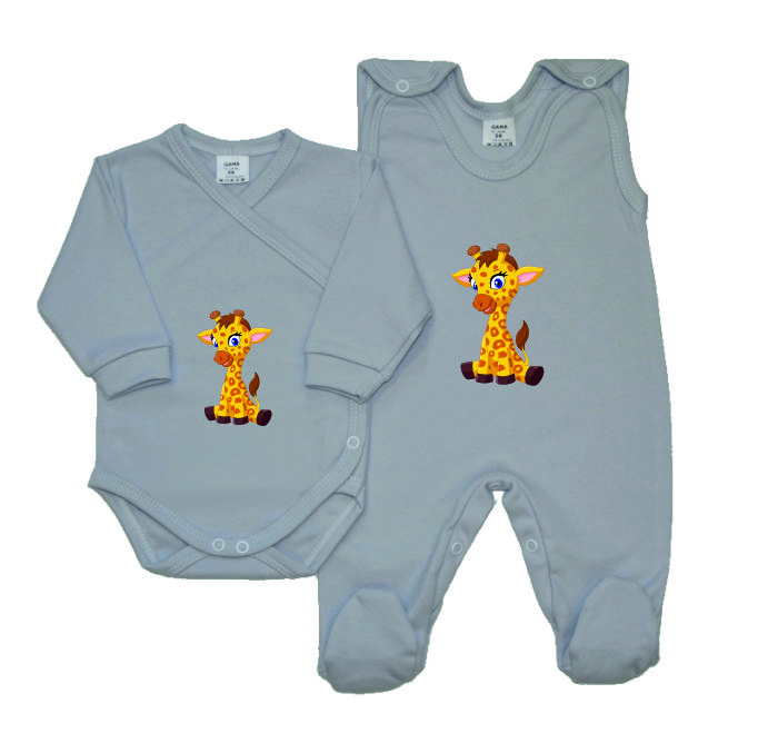 - Soupravička do porodnice Gama šedá 2-dílná zavinovací body+dupačky žlutá žirafa vel.56