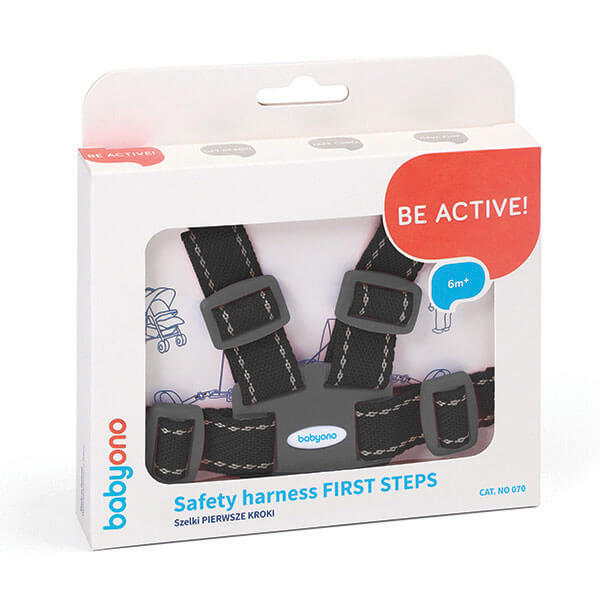 Dětské bezpečnostní šráky/kšíry do kočárku, Baby Ono, černošedé vodící, se sponami z tvrzeného plastu, pomáhají zajistit dítě před pádem z kočárku nebo křesílka. Dětské šráky do kočárku, obsahují speciální pásek, který můžete použít jako vodítko při výuce samostatné chůze. Pomocí regulačních přezek přizpůsobíte kšíry velikosti dítěte a rozměru kočárku. Kšíry/šráky do kočárku, jsou určeny dětem od 6-tého měsíce do 4-tého roku věku.