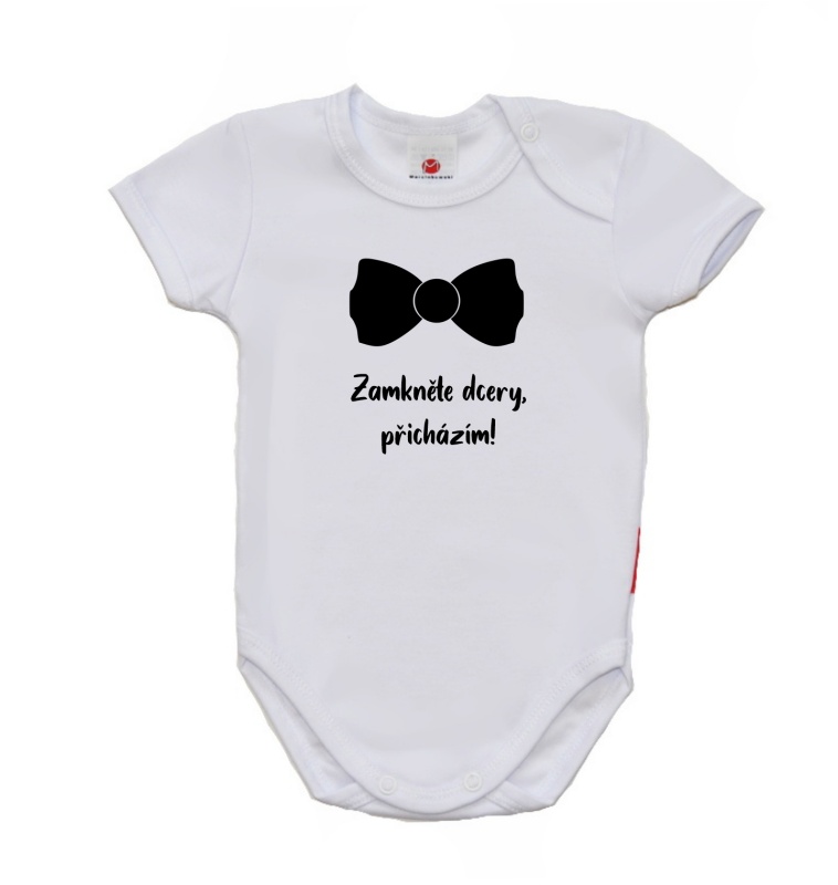 - Vtipné dětské body, Gama, krátký rukáv, Zamkněte dcery, přicházím s motýlkem velikost 62