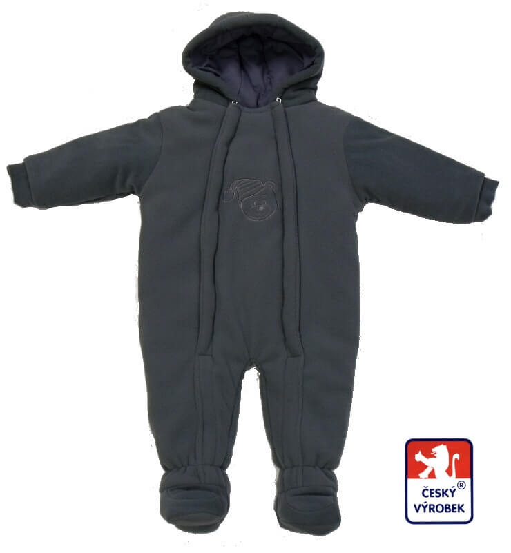 - Zimní dětská kombinéza Dětský svět tmavě šedá s medvídkem s čepicí vel.80