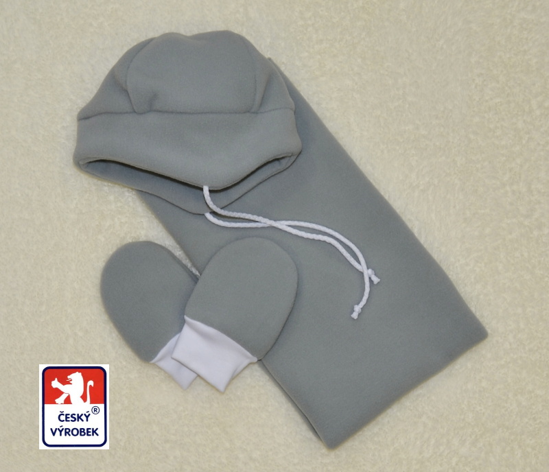 Zimní dětská sada Dětský svět 3-dílná šedá čepička Kuklička + rukavičky+šálek