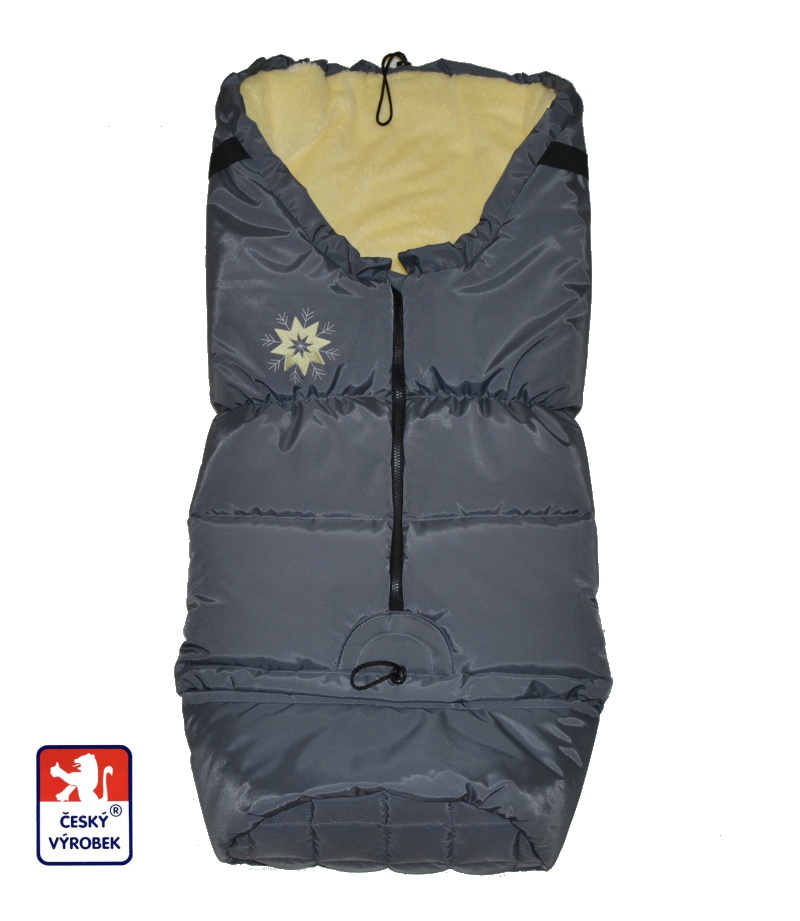 Svrchní materiál je plně impregnovaný, /podobný materiálu používaný na výrobu zimních bund a kočárků / a duté vlákno společně se značkovým thermoflisem zaručují extra teplo a nežmolkovatelnost. Fusak je opatřen uchycením do sportovního kočárku a kvalitně obšitými prostřihy, jakopřípravu pro 5-bodové bezpečnostní pásy.