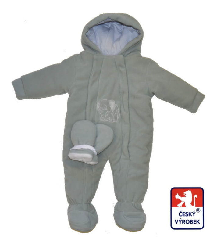 Zimní kojenecká kombinéza, Dětský svět, světle šedá s výšivkou slona a rukavicemi velikost 56Skladem v e-shopu840 Kč/ ks694 Kč bez DPH