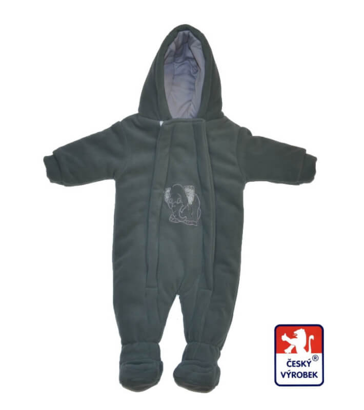 Zimní kojenecká kombinéza pro miminko, šedá s výšivkou slona pochází z naší přímé výroby Dětský svět Fulnek.