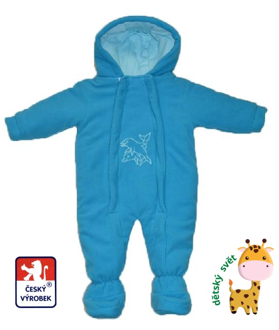 Zimní kojenecká kombinéza pro miminko Dětský svět tyrkysová s delfíny, je vyrobena z vysoce kvalitního, atestovaného, mikrothermofleece s nežmolkovací úpravou.