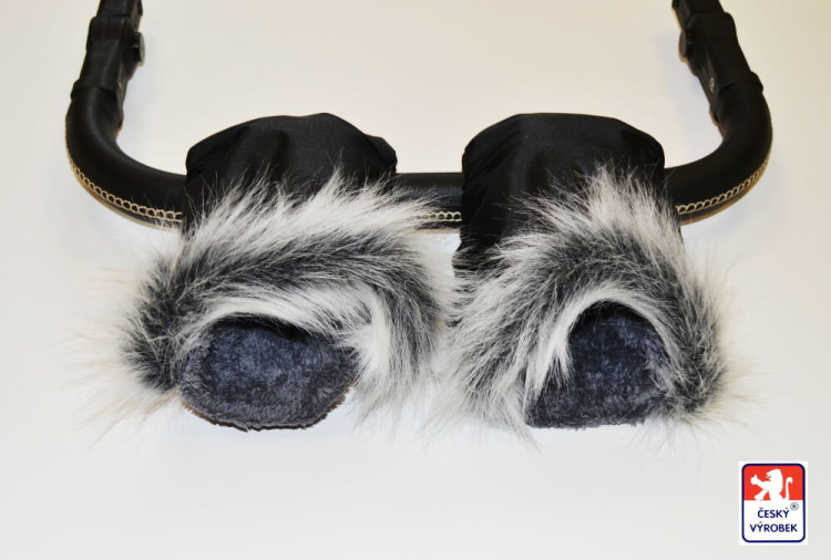 Barva rukávníku na kočárek s kožešinou: svrchní černá, vnitřní materiál lama v šedé barvě + kožešina